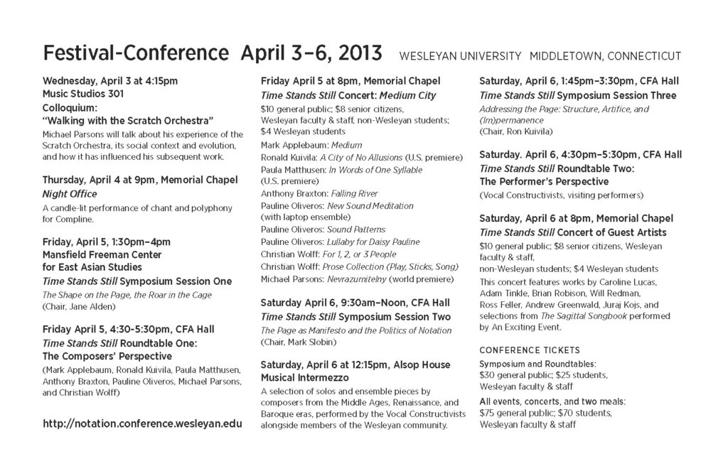 In April 2013, the Vocal Constructivists were ensemble-in-residence at Time Stands Still: Notation in Musical Practice